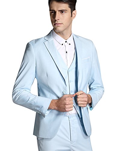 Best Seller! MOGU Mens 2 Button 3 Piece Suit For Weddings School Proms Office UK Size 42 Light Blue Review