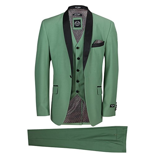Best Seller! XPOSED Mens 3 Piece Suit in Green Shawl Lapels Vintage Smart Tailored Fit Wedding Party Prom [Green,Chest UK 48 EU 58,Trouser 42"] Review